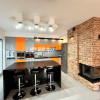 — a modern kitchen with an island (induction hob, oven, microwave, built-in coffee machine, dishwasher, refrigerator),