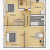 Garaż o powierzchni 17,77m2 i strych 26,3m2 o wysokości normatywnej, którą też można byłoby zaadoptować na część mieszkalną i powierzchnia o wysokości poniżej normy 22,5m2.