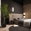 - Dużej sypialni małżeńskiej, utrzymanej w stonowanych, ciepłych barwach, które sprzyjają relaksowi i odpoczynkowi.